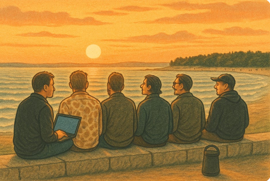Finding: the divide isn’t nearly as visible as you’d think. Those still “plugged in” barely notice; the phone is an individual habit, not a group activity. You, the one without it, simply move through a different mode of awareness.