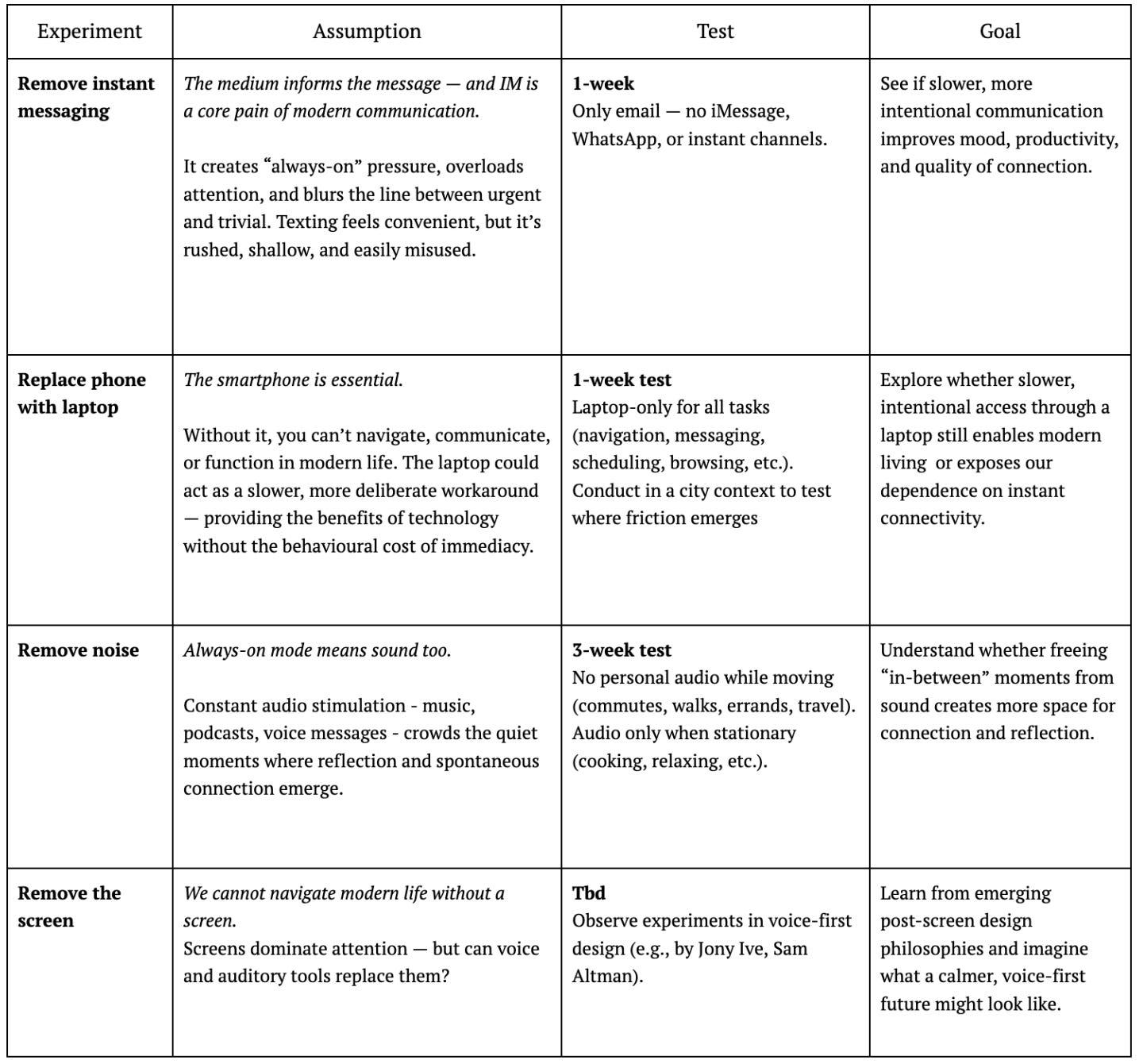 To zero in, I’ll focus upcoming experiments around the core ambition :
